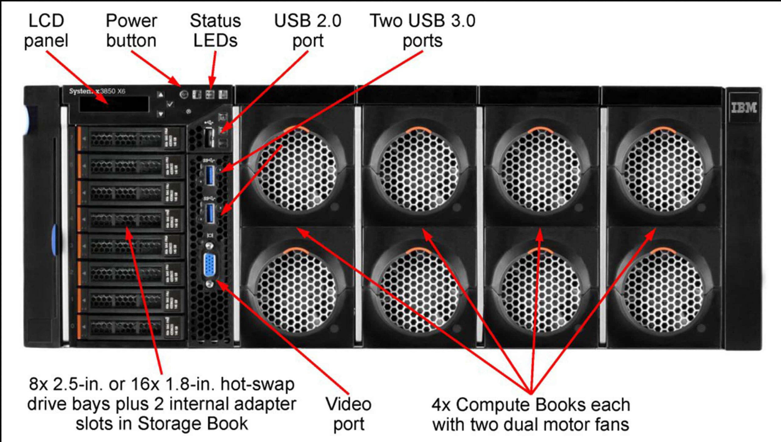 Сервер IBM System x3850 X6 4SFF 4xXeon E7-8890v4(24 Core, 2.2/3.4 GHz, 9,6Gt/s), 512GB, 2xM5210, 4x1400W